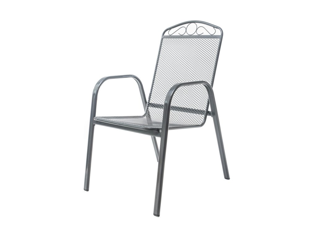 Židle zahradní ocel. Ocelová zahradní židle s opěrkou, zakončenou vkusným dekorem, se hodí zejména do zahrad a na terasy domů. Židle je ošetřena dvojitou vrstvou lakování. Základní úprava je provedena systémem E-coating, což je jedna z nejodolnějších a nejvýhodnějších metod ošetření, zajišťující ochranu proti korozi i na skrytých místech a následně jsou židle opatřeny práškovým lakem určujícím finální barvu produktu. Židle jsou stohovatelné, tím i dobře skladovatelné.Obrázky jsou pouze ilustrativní.